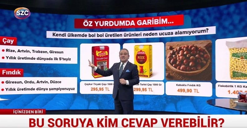 SÖZCÜ TV programcısı Ekrem Açıkel, İçinizden Biri programında çay ve fındık üretiminde lider ülke olan Türkiye’deki çay ve fındık fiyatlarını araştırdı.